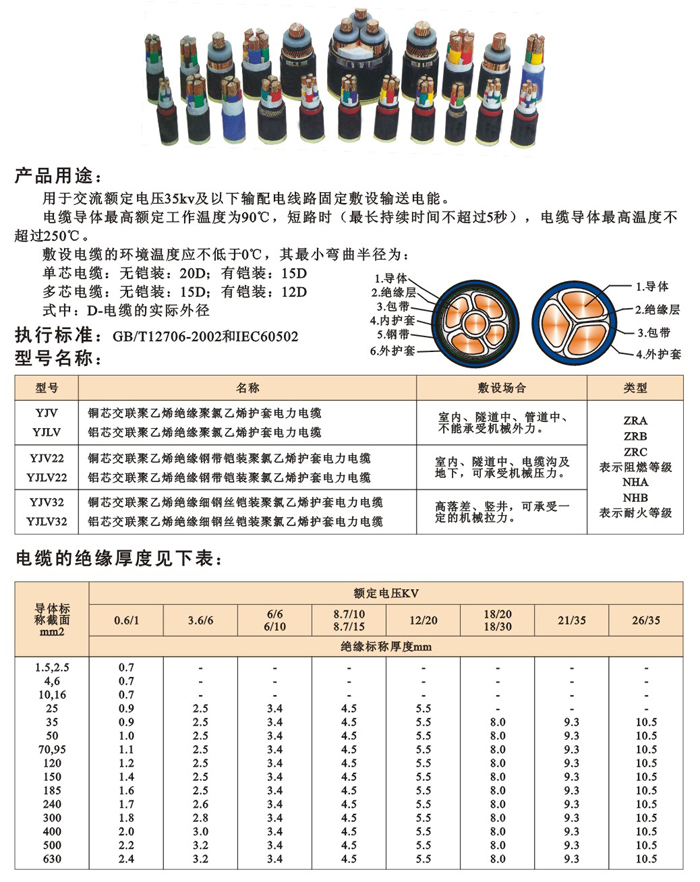 額定電壓35KV及以下交聯聚乙烯J緣電力電纜