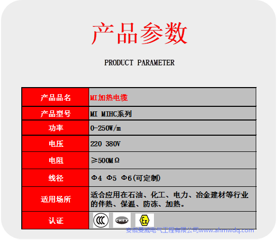 銅護套系列礦物絕緣加熱電纜可以滿足高溫條件和長輸管線伴熱的需要。銅護套加熱電纜的***高承受溫度可達250℃,導體電阻值的范圍從480-0.5Ω/km,對要求防腐或埋地應用的場合,需加高密度聚乙烯HDPE外護套(MI),MI***高承受溫度可達90℃,礦物絕緣電纜具有優(yōu)良的機械強度。