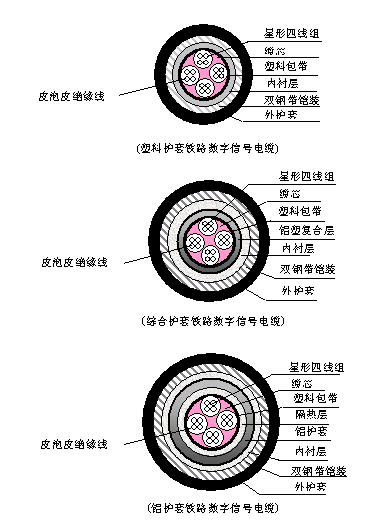 控制電路,其中綜合護套、鋁護套鐵路信號電纜具有一定的屏蔽性能,適宜于電氣化區段或其它有強